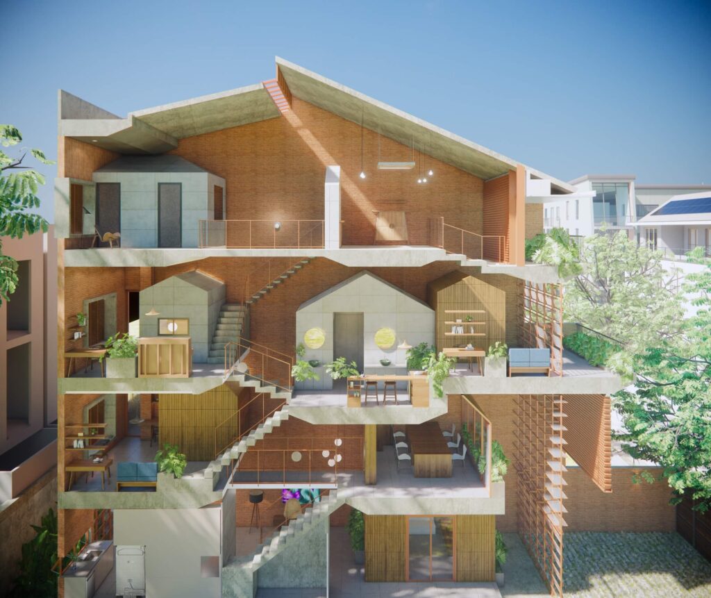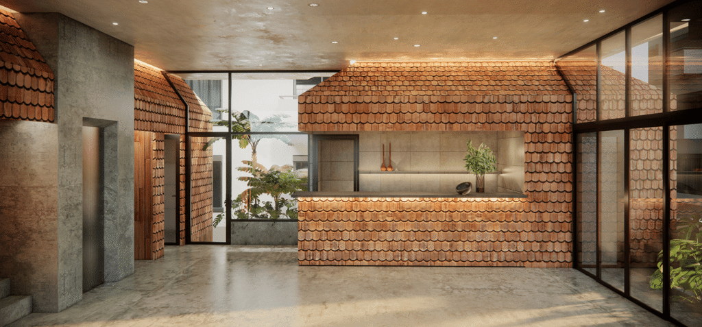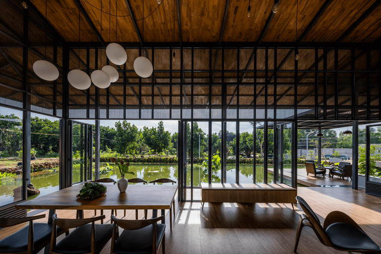 Công trình là showroom trưng bày của nhà máy hạt điều Bà Tư, được hình thành như một không gian giao thoa giữa bản sắc địa phương và kiến trúc đương đại.