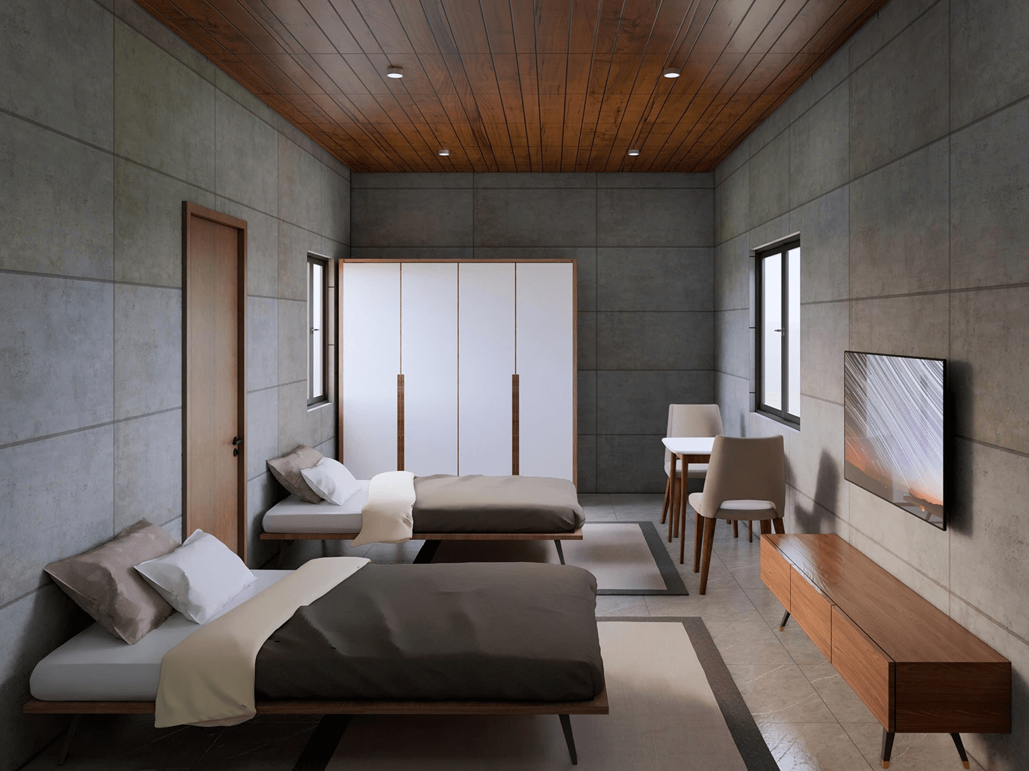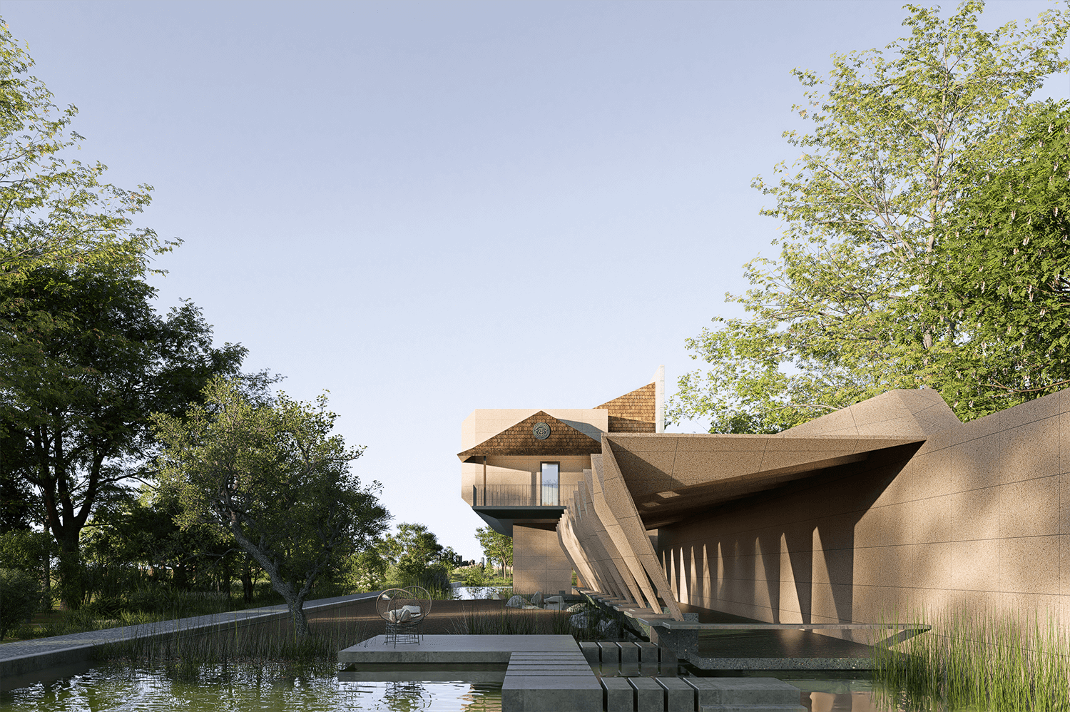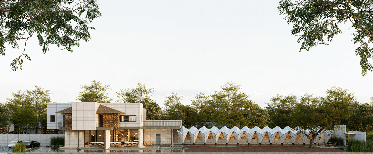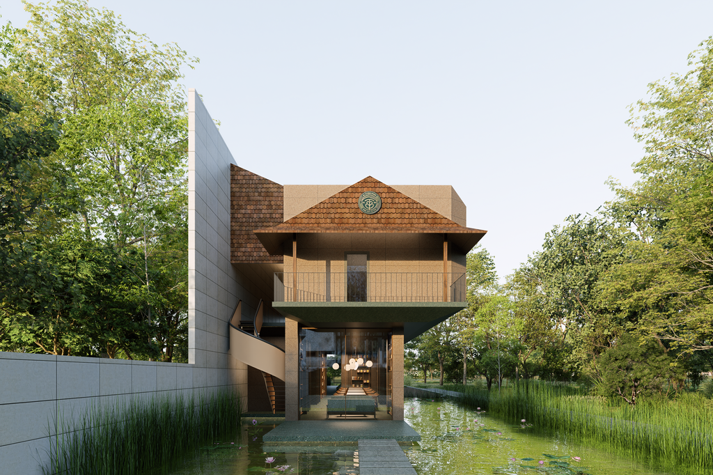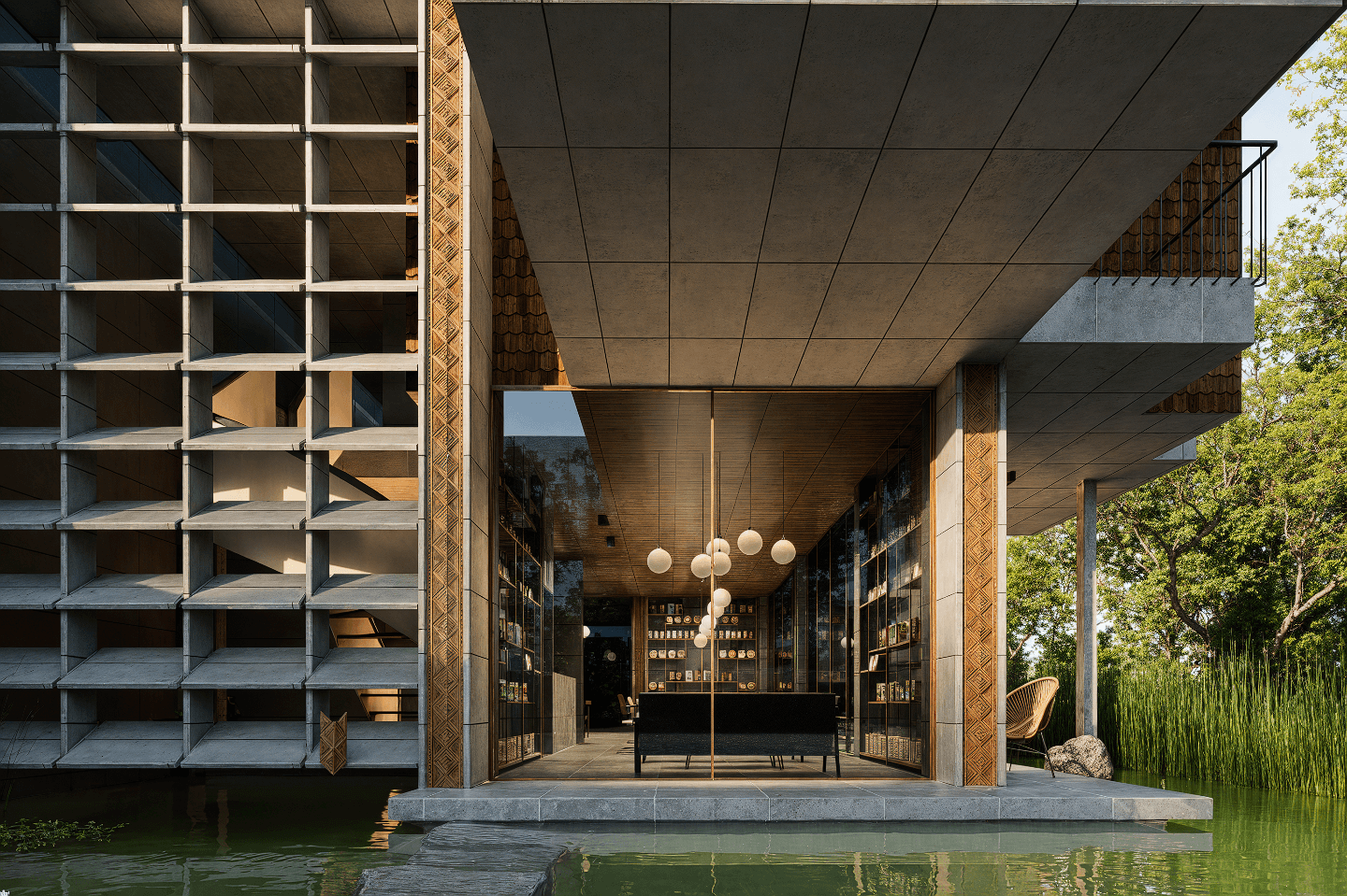 Công trình là showroom trưng bày của nhà máy hạt điều Bà Tư, được hình thành như một không gian giao thoa giữa bản sắc địa phương và kiến trúc đương đại.